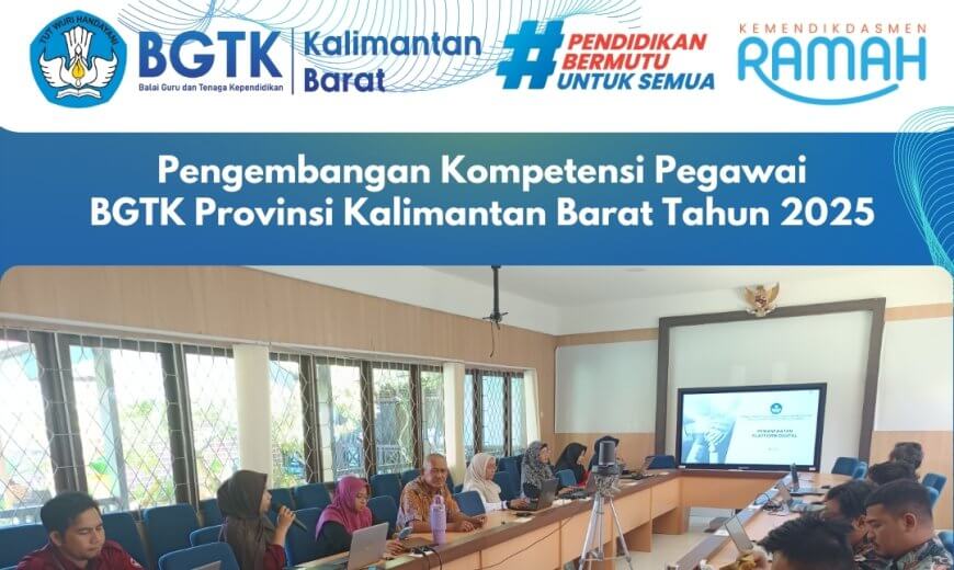 Mempawah, 16 Mei 2025 — Dalam rangka meningkatkan kapasitas dan profesionalisme pegawai, Balai Guru dan Tenaga Kependidikan (BGTK) Provinsi Kalimantan Barat menyelenggarakan kegiatan bertajuk Pengembangan Kompetensi Pegawai BGTK Provinsi...